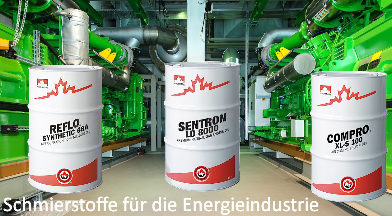 Zuverlässige und effiziente Schmierstoffe sind die Grundlage für einen wirtschaftlichen Betrieb von BHKWs, Kältemaschinen, Kompressoren, Turbinen und Wärmeträgersystemen. Wir liefern mit Petro-Canada Sentron Gasmotorenöle, Petro-Canada Reflo Kältemaschinenöle, Petro-Canada Compro Verdichteröle, Petro-Canada Turboflo Turbinenöle, Petro-Canada Calflo Wärmeträgerfluids und BASF Glysantin Kühlerschutz Produkte, die den hohen Anforderungen gerecht werden.